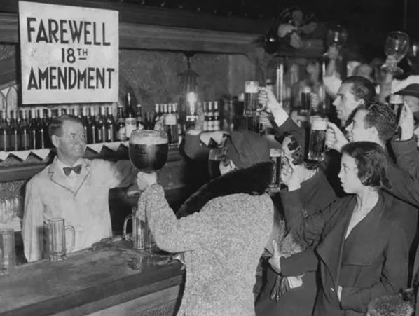 The enactment of the Twenty-First Amendment, sparked in large part by the Great Depression, ended Prohibition’s noble experiment. Drinking, which had never been illegal, was now allowed to come out in the open. Legal production started back up, though on a more consolidated scale (only the large brewers and distilleries could survive being closed down for over a decade). And while alcohol was legal again, its consumption was different. Part of this had to do with increased regulations and their enforcement. But another factor was that by the 1930s more and more Americans had home refrigeration that allowed them to consume beer in the privacy of their own home. The local saloon or bar had to continue to evolve (often becoming more of a restaurant) in order to thrive if not survive.